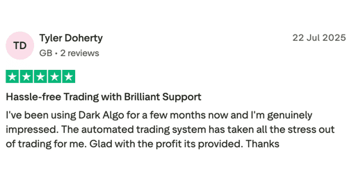 Within 24 hours, your automated trading begins working for you. The Dark Algo EA monitors markets 24/5, applying advanced risk management and proven strategies to generate consistent monthly returns while you focus on what matters most to you.