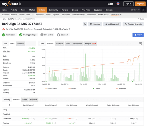 Within 24 hours, your automated trading begins working for you. The Dark Algo EA monitors markets 24/7, applying advanced risk management and proven strategies to generate 7-12% monthly returns while you focus on what matters most to you.